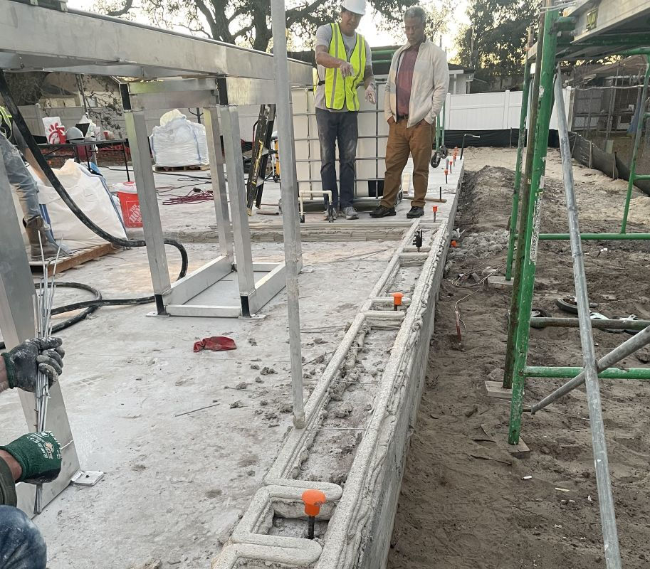 “Really, it’s pretty similar to regular construction,” he says. “The only difference, especially with what we’re doing, is that we’re printing the exterior walls layer by layer instead of doing block. We’re going layer by layer, section by section, and everything meets Florida building codes.”
